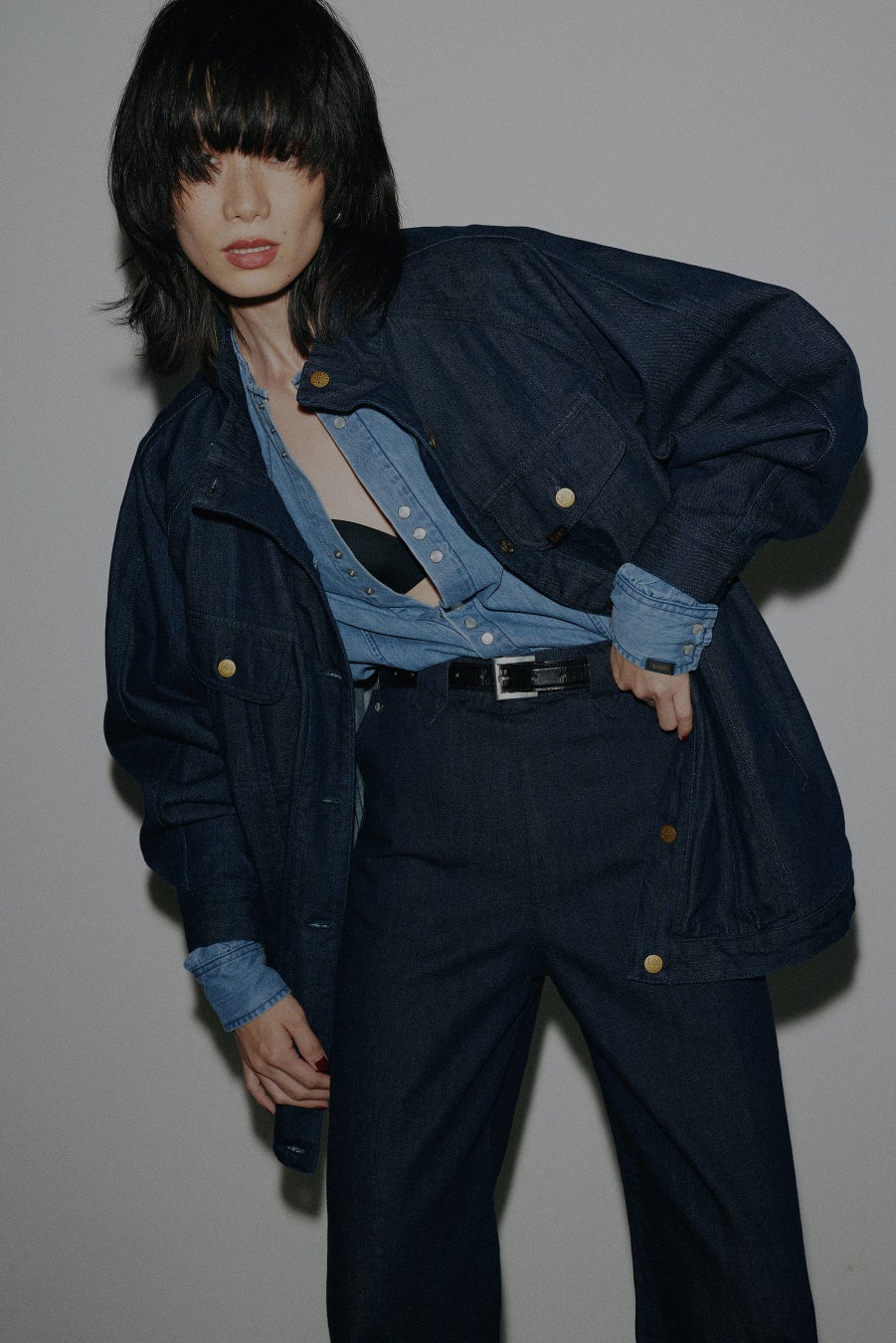 コラボレーション第二弾となる今回は、「Lee」オリジナルのデニム生地を使用したオーバーシルエットのデニムジャケット、「Lee」のウエスタンシャツにも使用されているシャツ用デニム素材を使用したシャツ、「Lee」オリジナルのバギーフレアデニムをグレーディングしたデニムパンツの3型。