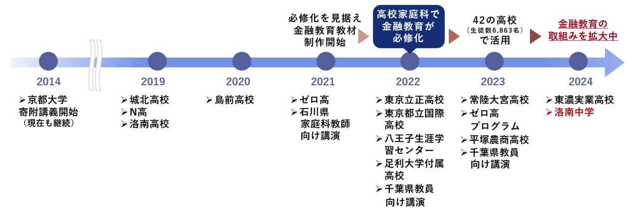 ・2022年4月から高校家庭科の授業で金融教育が必修化されるのにあわせ、国内最大の教員向けオンラインプラットフォーム「SENSEIノート」を開発・運営しているARROWS社と提携し、金融教育授業教材を開発。2022年3月より全国の高校を対象に無償提供を開始している他、出前授業も実施。