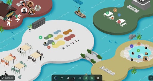 SpatialChatで独自に作り上げた空間で、ワークプレイス「enun」のオープン報告会や12月にはCommunity salonとして利用し、これからの活動方針の話し合いなどを実施しました。
