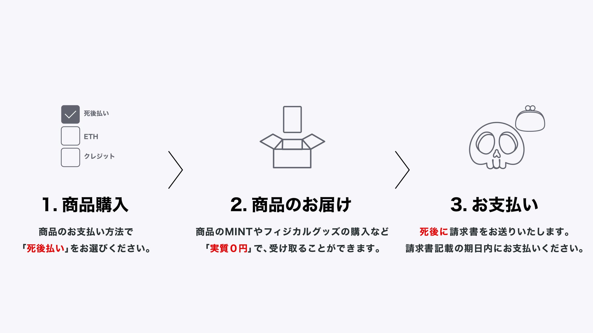 ※デジタル請求書は死後に、商品受け取りをされたウォレットアドレス宛にお送りさせていただきます。