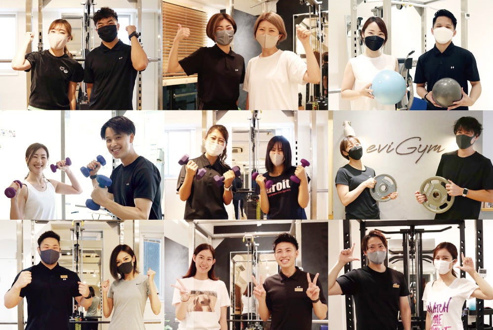 eviGymは累計7万人の来店数を誇るパーソナルジム。運動習慣が自然と身につくお客様に合わせたトレーニングメニューを「続けやすい低価格」と「続けたくなる楽しさ」で提供しています。「お客様もトレーナーも。笑顔でいられるパーソナルジムを目指して」がモットー。