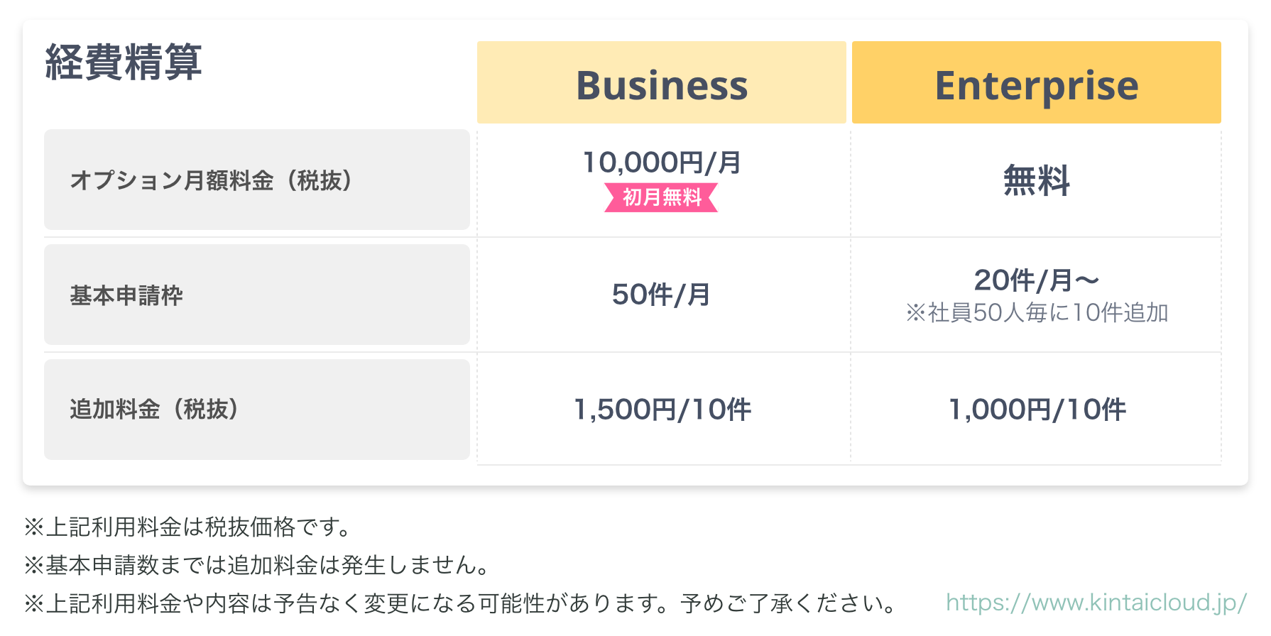 「経費精算」はオプション機能で、Business / Enterpriseプランをご契約の企業様のみご利用可能です。