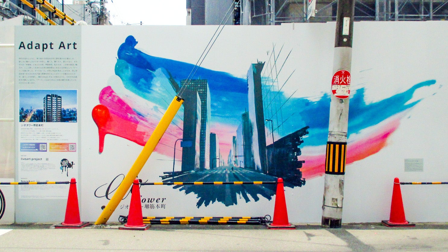 大阪堺筋本町で建設中の「ジオタワー堺筋本町」の仮囲いをキャンバスに、liveart projectによる色彩豊かなグラデーションが特徴的なアートを制作しました