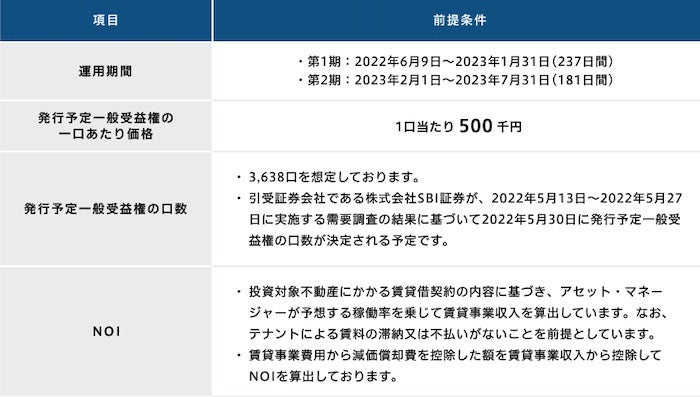 また、本資料は一般に公表するための文書であり、国内外問わず投資勧誘等を目的に作成されたものではありません。投資を行う際は、必ず発行者が作成する受益権発行届出目論見書及びその訂正事項分をご覧いただいた上で、投資家ご自身の責任と判断で行うようお願いいたします。また、本資料は、米国における証券の販売の勧誘を構成するものではありません。