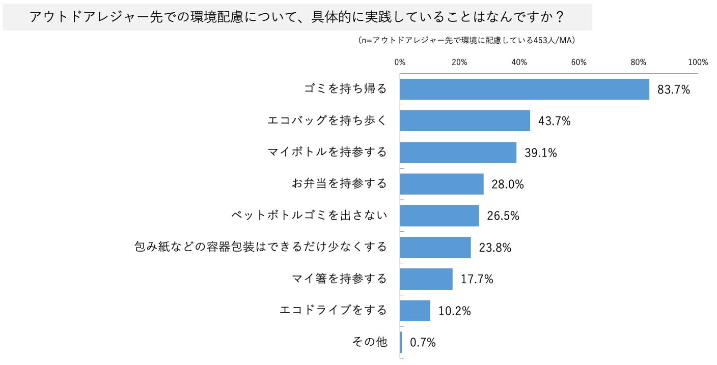 今年アウトドアレジャーに行く人は半数以上で1位は「お花見」 ごみ1位はペットボトル約9割がレジャー先での環境配慮を意識も、50代以上より40代以下の方が意識がやや低い傾向