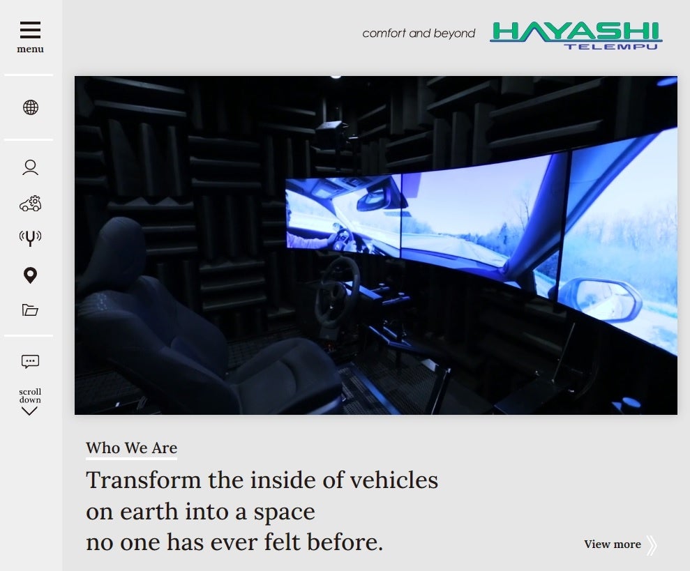 主力製品であるフロアカーペットを始めとした自動車内装部品の紹介や、強みである世界トップクラスの車内音響解析技術をわかりやすく映像で紹介し、当社のMission「最適な製品とソリューションで、最高の快適さを追求する」を表現しています。当社の技術サービスに加え、業界トレンドなどの最新情報もコーポレートサイト上で発信していきます。