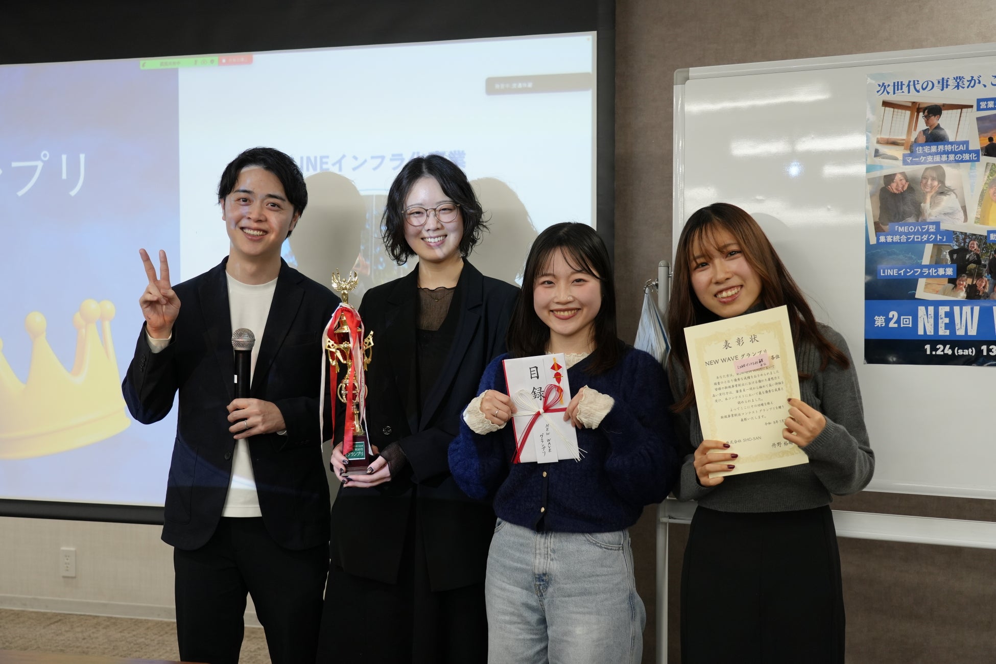 当社は「迷ったら飛べ」「強みで暴れろ」というクレドのもと、年齢・経歴・雇用形態に関係なく、意欲と実力があれば早期から重要な役割を担えるフラットな組織づくりを大切にしてきました。新規事業創出コンテスト「NEW WAVE」もその一環であり、インターン生を含むすべてのメンバーが自らの挑戦を経営に直結させられる場として設計しています。