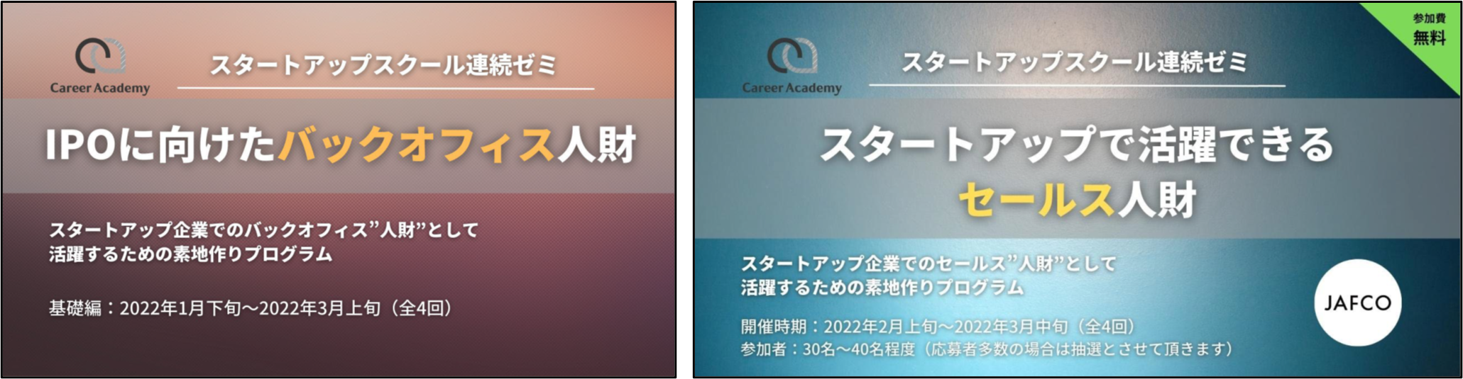ジャフコ グループ株式会社(本社:東京都港区、取締役社長:三好啓介)は、スタートアップとの接点を通じてキャリアを育てる当社実施のプログラム「キャリアアカデミー」が、経済産業省が実施する『スタートアップチャレンジ推進補助金』事業に採択されたことをお知らせ致します。50年近く築き上げてきたスタートアップとのネットワークを生かした人材支援を行うことで、スタートアップエコシステムの拡大に寄与して参ります。