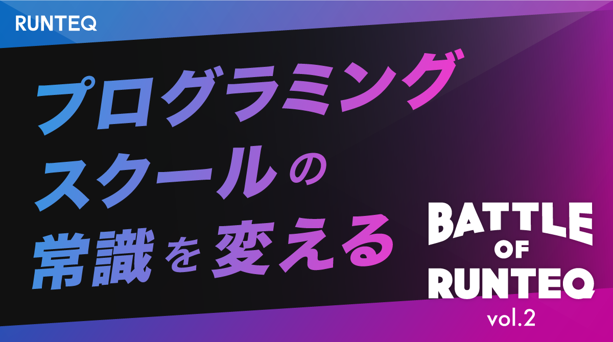 プログラミングスクール『RUNTEQ』が、個人開発したサービスを発表し競い合うポートフォリオバトルイベント「BATTLE OF RUNTEQ vol.2」を6/11(土)15:00〜開催。