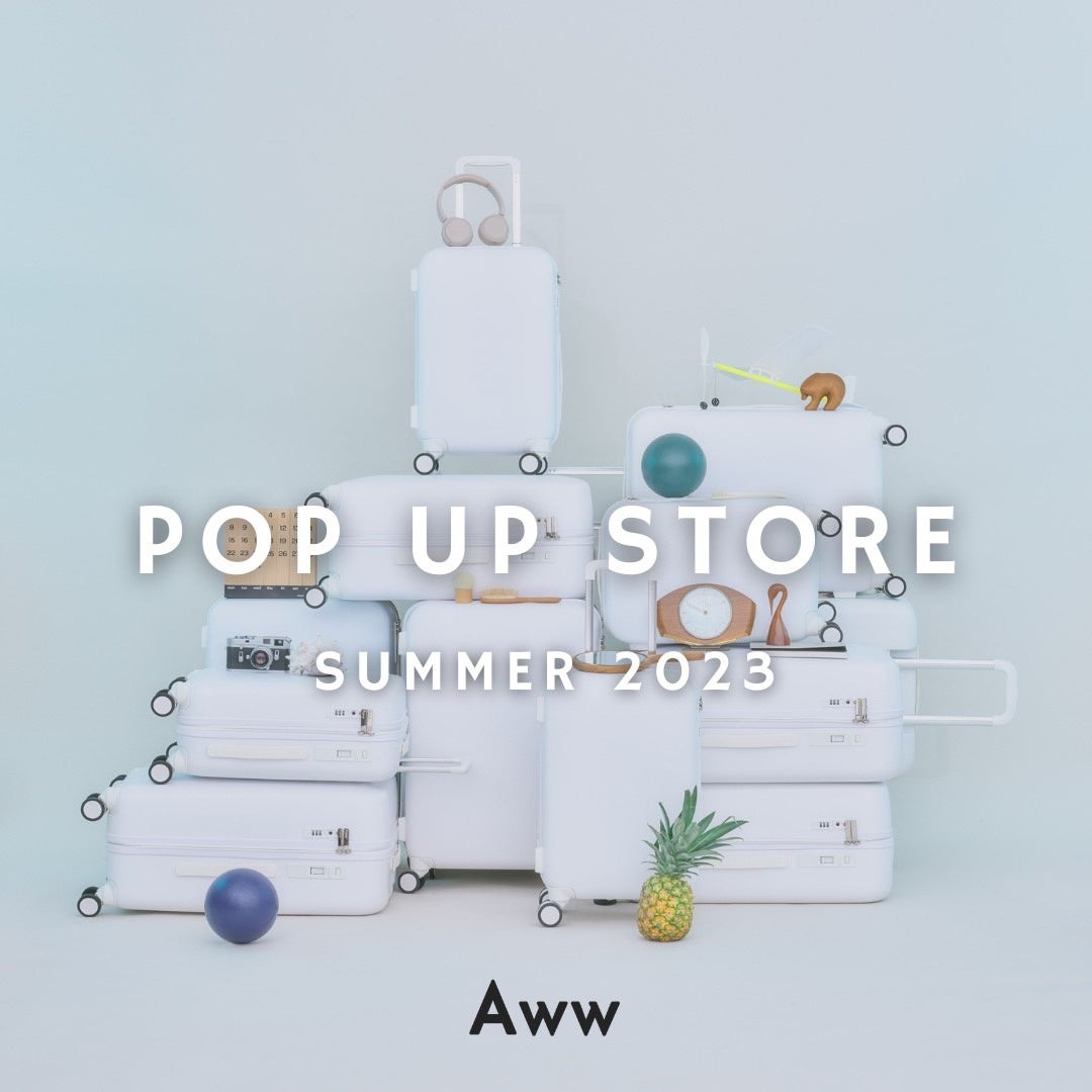 Awwは“心トキメク旅”をテーマに、世界の情景をイメージしたスーツケースや、サボテンやりんごなどのサステナブル素材を使用したバッグ、トラベルポーチなど、旅行中の気分を高めるこだわりのアイテムを展開しています。今回のポップアップストアでは、定番アイテムからこの夏の新商品まで幅広いアイテムを用意し、豊富なラインナップでご覧いただけます。また、WEBで完売となっている商品の先行予約の受付や、ご購入いただいた方へのノベルティもご用意しております。