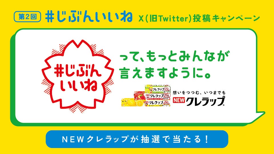 「#じぶんいいね」のハッシュタグをつけて、コメントを投稿された方の中から抽選で30名様に「NEWクレラップ」をプレゼントいたします。さらに、集まった投稿の中から選出した内容を、クレハの家庭用品サイト「クレライフ」やX(旧Twitter)上に掲出する予定です。
