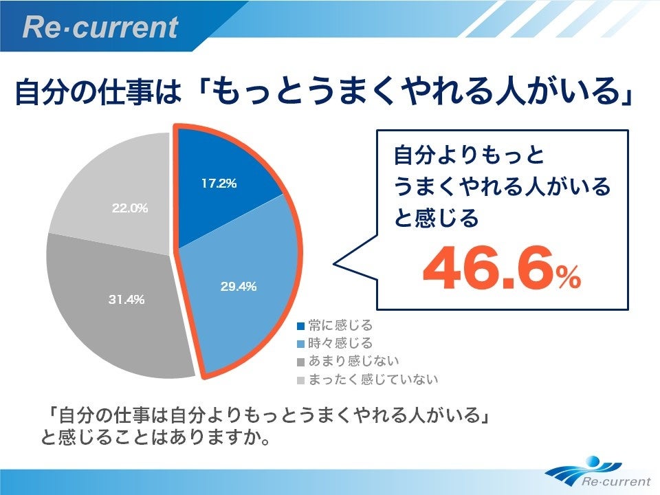 「自分の仕事は『自分よりもっとうまくやれる人がいる』と感じることはありますか」と聞いたところ、「常に感じる」「時々感じる」が合わせて46.6%と全体の四割を超えました。