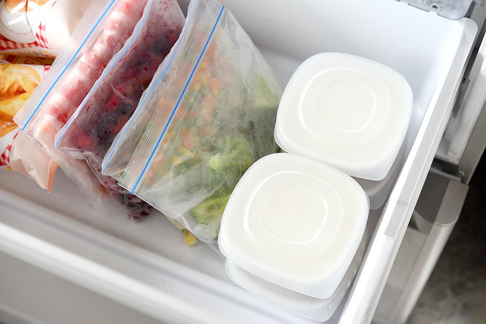 冷凍庫の中は色々な食品や食材が保管されていたりするもの。【ご飯がう米(まい)わん】は四角いカタチだから、デッドスペースを最小限に抑え、冷凍庫内でスッキリと収納することが出来ます。