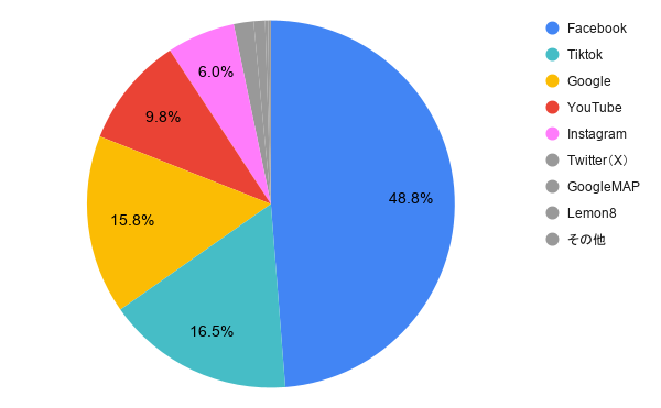 第1位 Facebook(48.8%) 第2位 TikTok(16.5%)