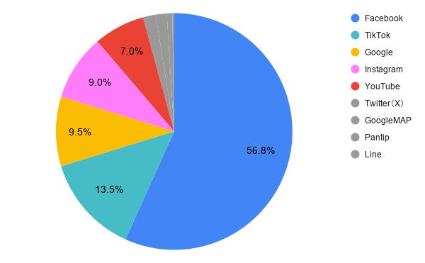 第1位 Facebook(56.8%) 第2位 TikTok(13.5%)