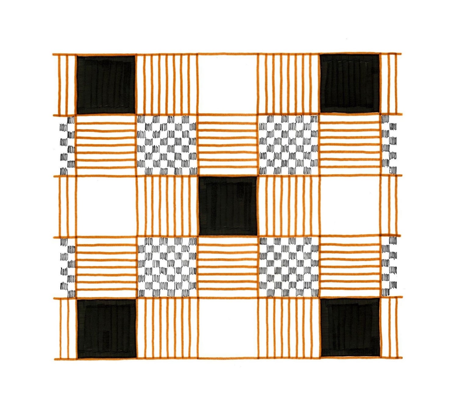 コロマン・モーザーの《アームチェア》からインスピレーションを受けた同名のテキスタイルのデザイン画。