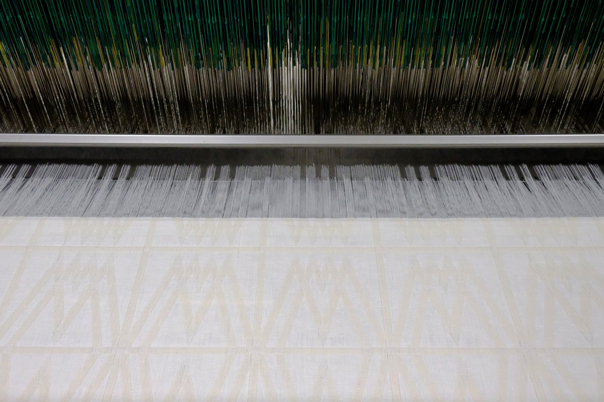 なお、今回のテキスタイルの製織は、その高い技術力と表現力に定評のある埼玉県飯能市の専門工場・マルナカが手がけ、最終的に全長250メートルに及ぶ展覧会のためのテキスタイルを織り上げました。