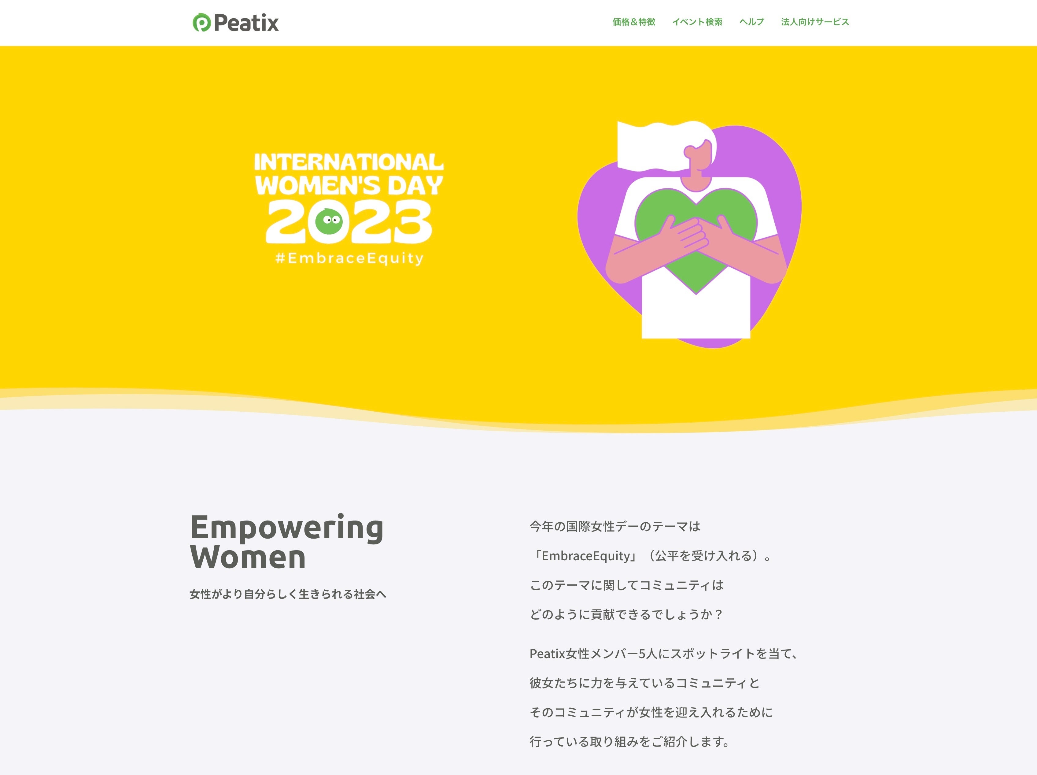 イベント・コミュニティプラットフォーム「Peatix」、国際女性デーに合わせて、女性をエンパワーする3つの取り組みを実施