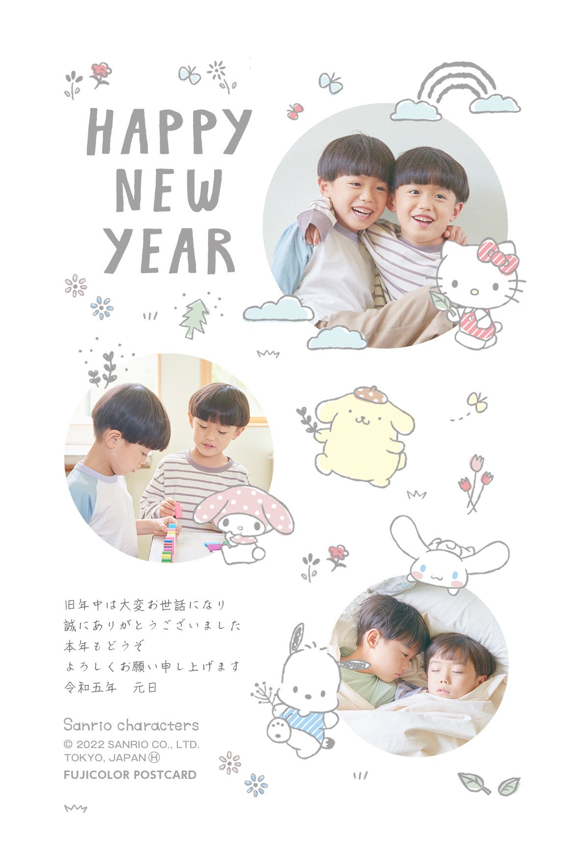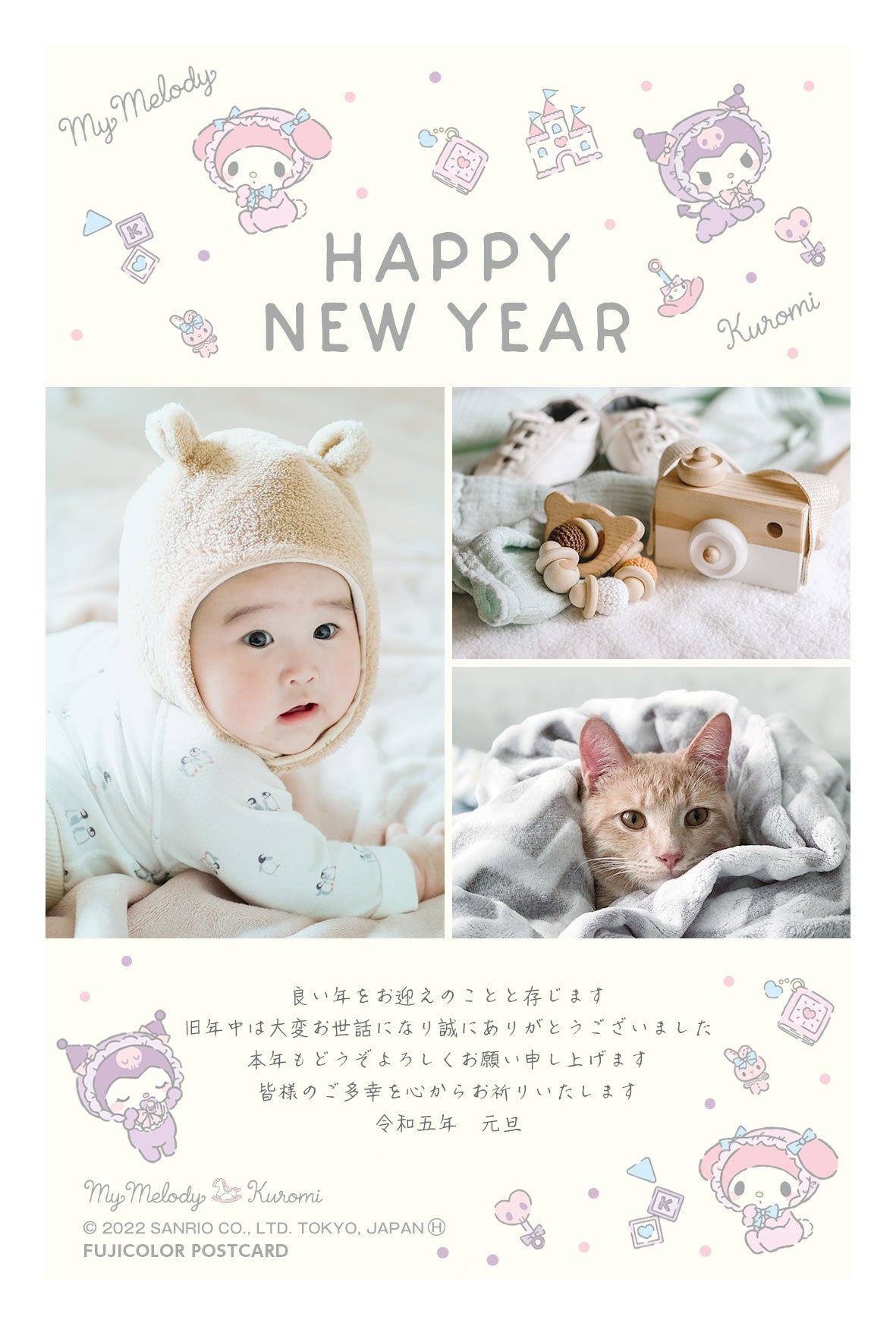 マイメロディやクロミ、ハローキティに加え、ポチャッコやシナモロール、ポムポムプリンなども登場します。サンリオキャラクターはお子様のお写真との相性も抜群です。サンリオキャラクターファンはもちろんのこと、そうでない方にも2023年の始まりのご挨拶にぴったりな必見のデザインとなっておりますのでお好みに合わせてお選びください。