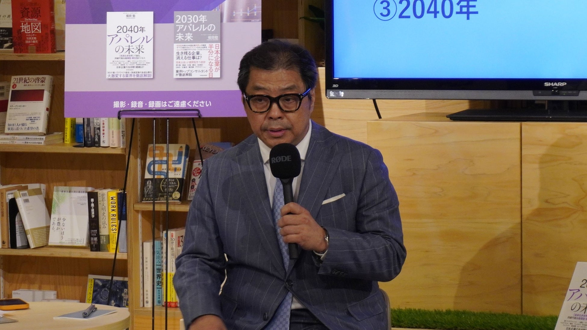 書籍『2030年アパレルの未来』『2040年アパレルの未来』の著者 福田 稔氏による講演が行われました。繊維・アパレル業界の未来を多角的かつ本質的に考察、分析し、直近の変化やビジネスと環境負荷削減を両立させるために必要な対策、今後アパレル企業に求められる企業経営のあり方など、様々なトピックについて詳しく語られました。