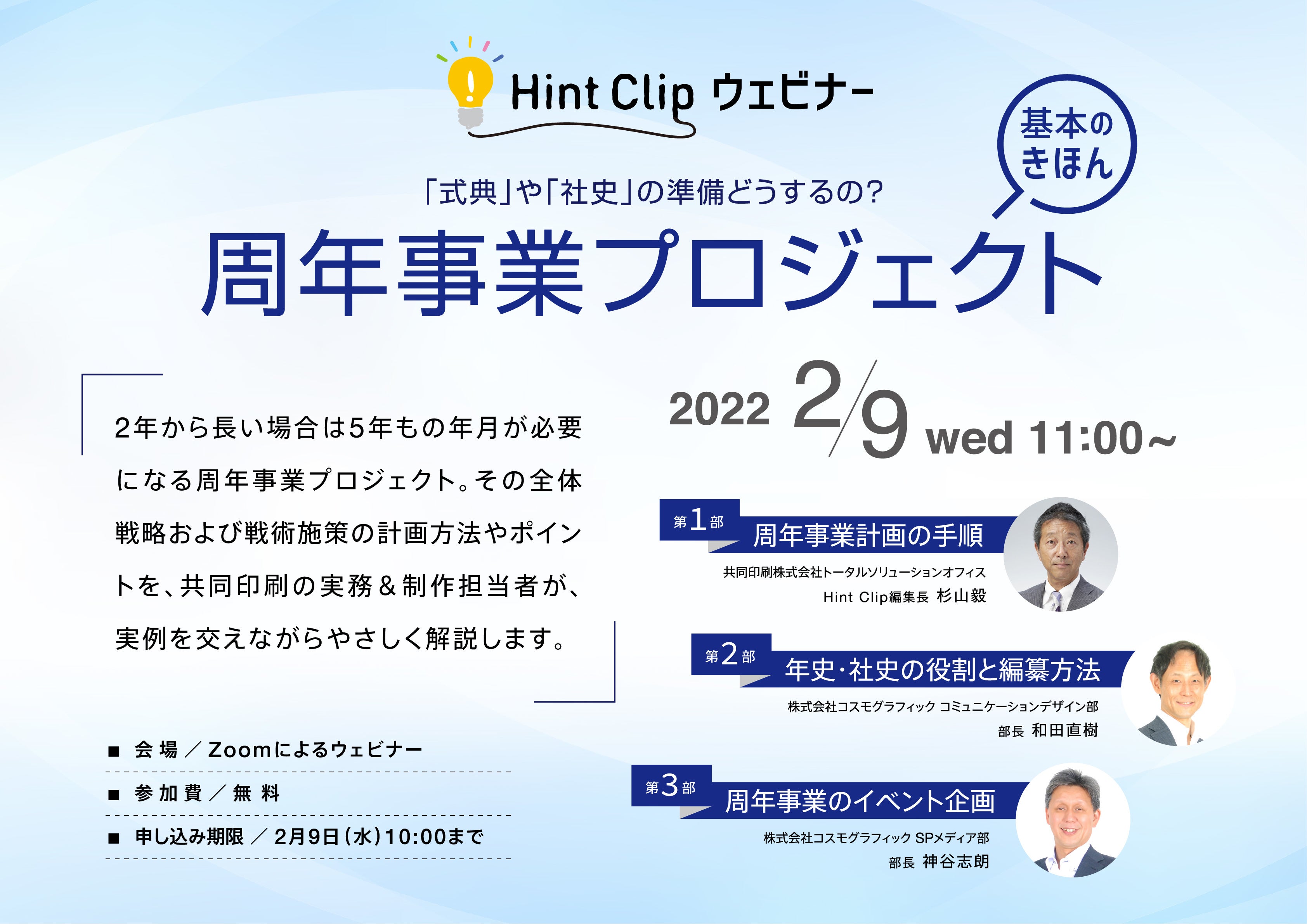 【共同印刷主催】HintClipウェビナー「周年事業プロジェクト」基本のきほん