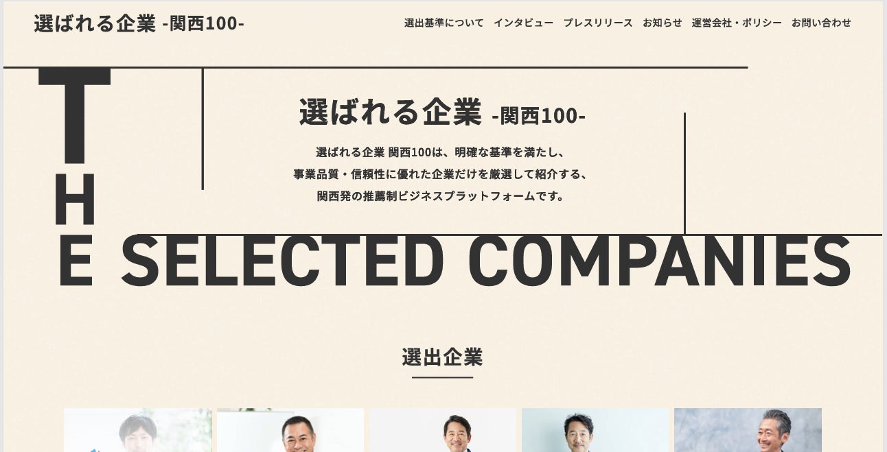 「選ばれる企業-関西100-」は関西の優良企業および経営者を100社限定で選出・推薦し特集にてご紹介するサイトです。