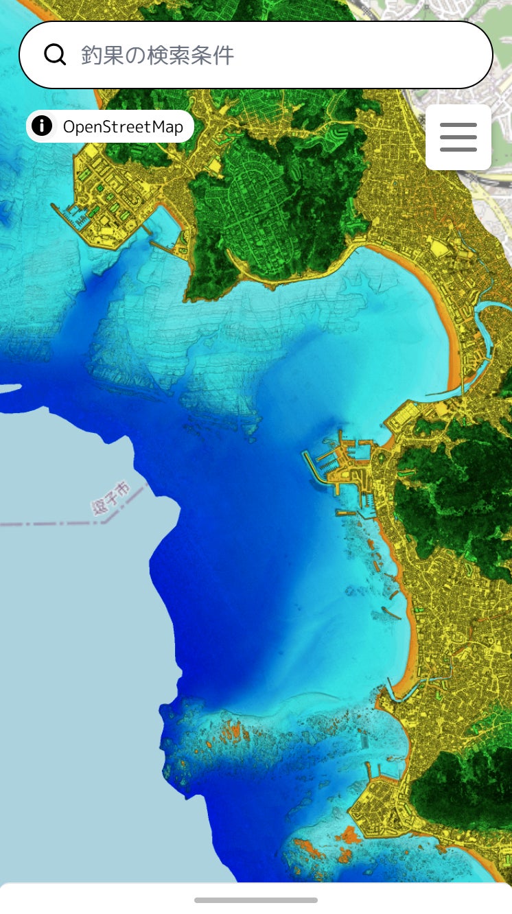 『釣りドコ』は、航空レーザ測深機(ALB)により取得した極めて詳細な海底地形図(水深段彩図)をスマートフォンやPC等からWebサイトのように閲覧できるWebアプリ。