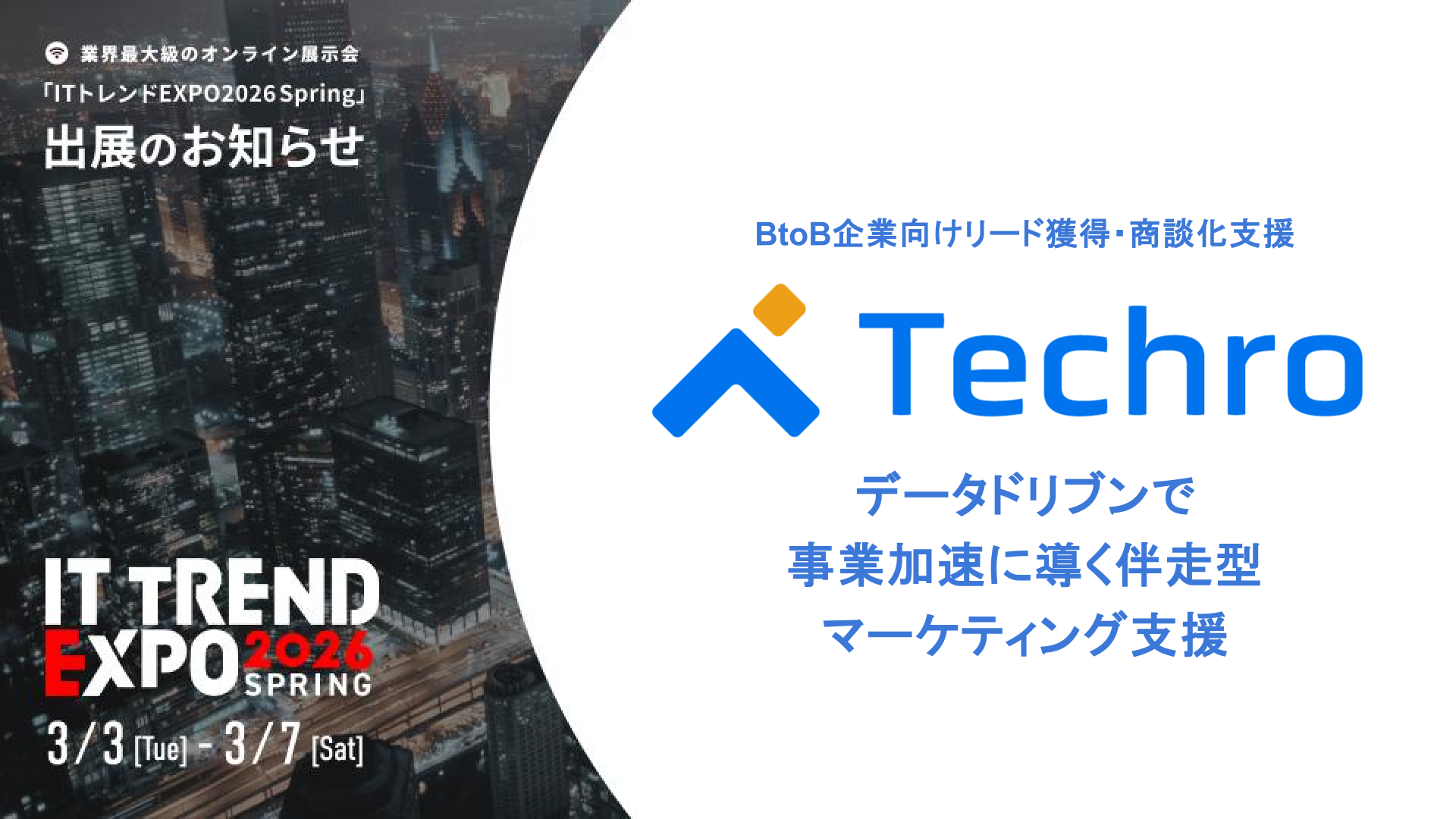 BtoB企業のリード獲得を支援するテクロ、業界最大級のオンライン展示会「ITトレンドEXPO 2026 Spring」出展のお知らせ【キャンペーン中】