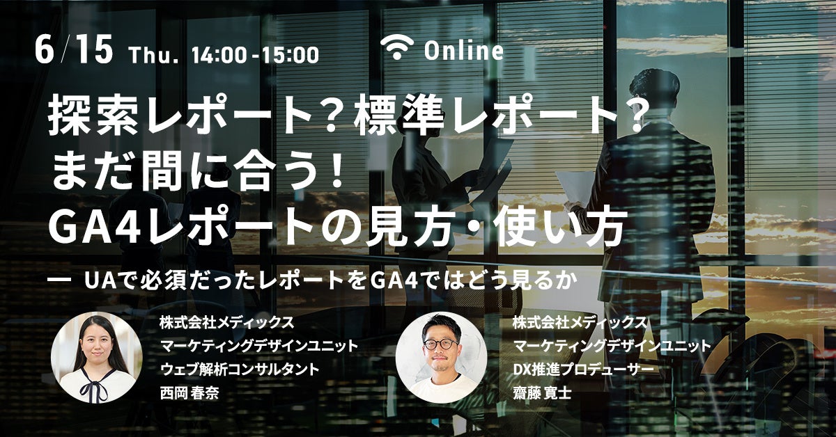 <無料ウェビナー 6/15(木)開催>『探索レポート?標準レポート?まだ間に合う!GA4レポートの見方・使い方』<Webマーケティング担当者様向け>