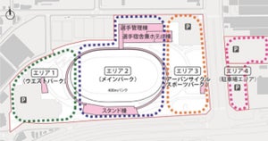 新たにオープンするアーバンサイクルスポーツパークをはじめ、緑あふれる公園エリアのウエストパーク、競輪が楽しめるスタンド棟やサイクリストフレンドリーなホテル棟などがあるメインパークで構成されています。