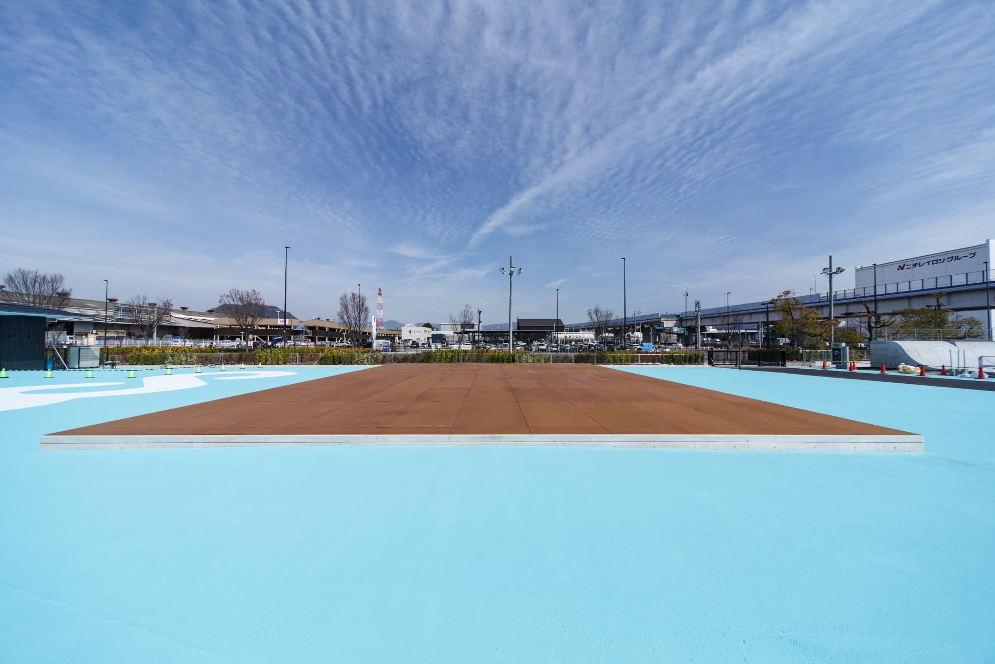 13m×18mのフラットランドステージとして、安全面への配慮からモルタル施工を採用しています。一般利用に加え、スクールの実施エリアとしての活用も想定しています。