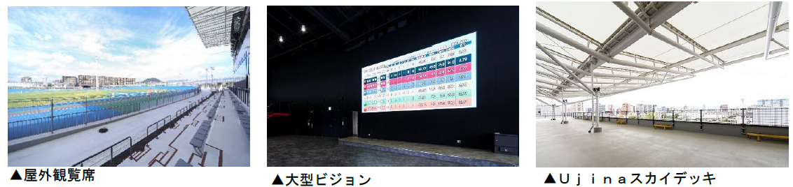 周長400mの新バンクには、大型LEDビジョンを新設し、レース映像等を放映するとともに、照明設備も新設し、ナイターやミッドナイト競輪を開催することが可能となりました。