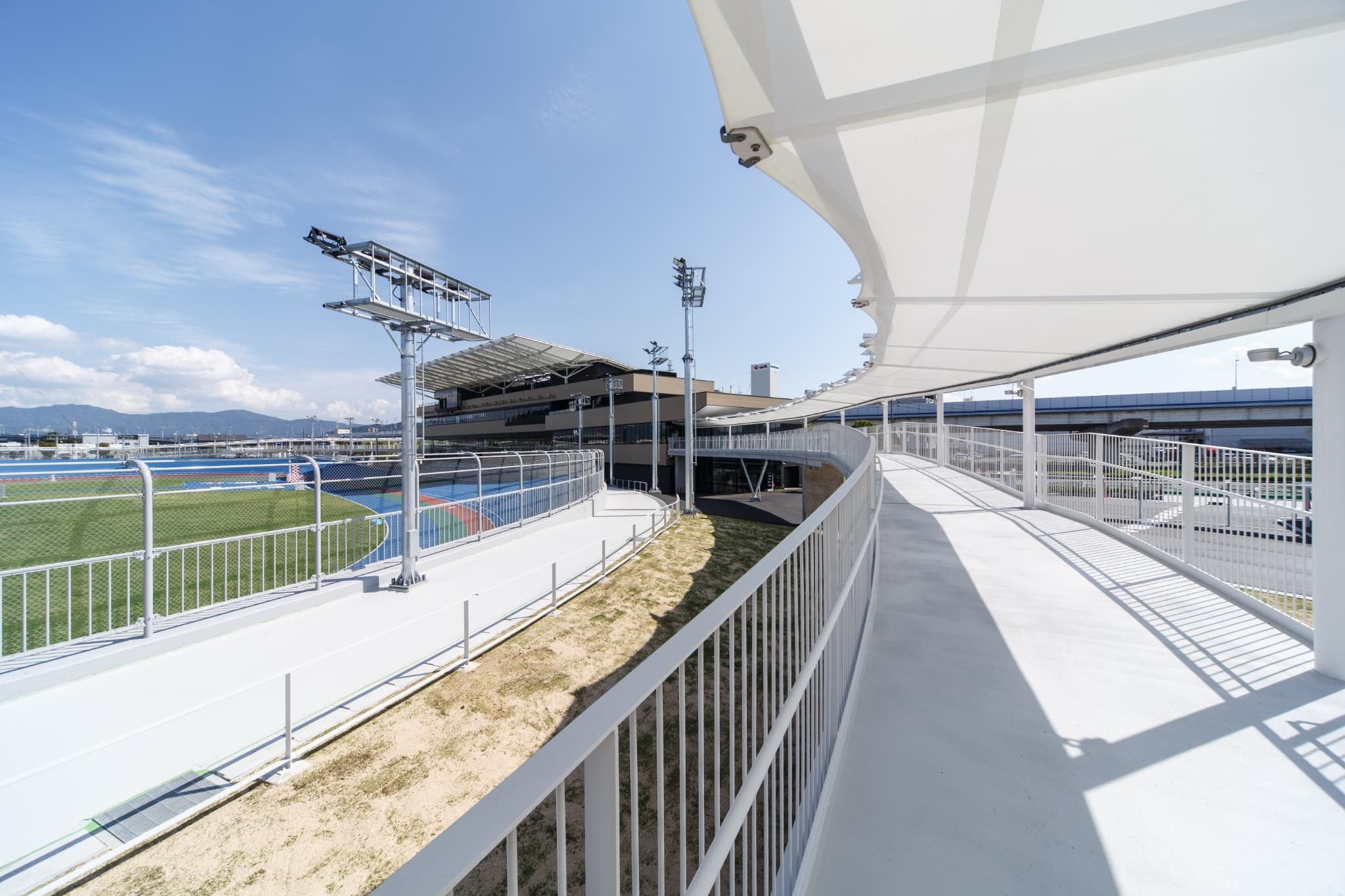 一つ目は、「緑あふれる、誰にでも開かれた施設」であること。従来の競輪場が持つ閉鎖的なイメージを刷新し、敷地内には多くの緑を取り入れ、複数の出入口を設けることで、誰もが気軽に立ち寄れる公園のような空間を実現しています。