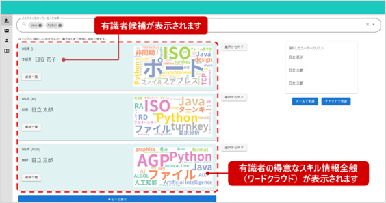 【利用者の画面イメージ (有識者の検索結果を表示)】