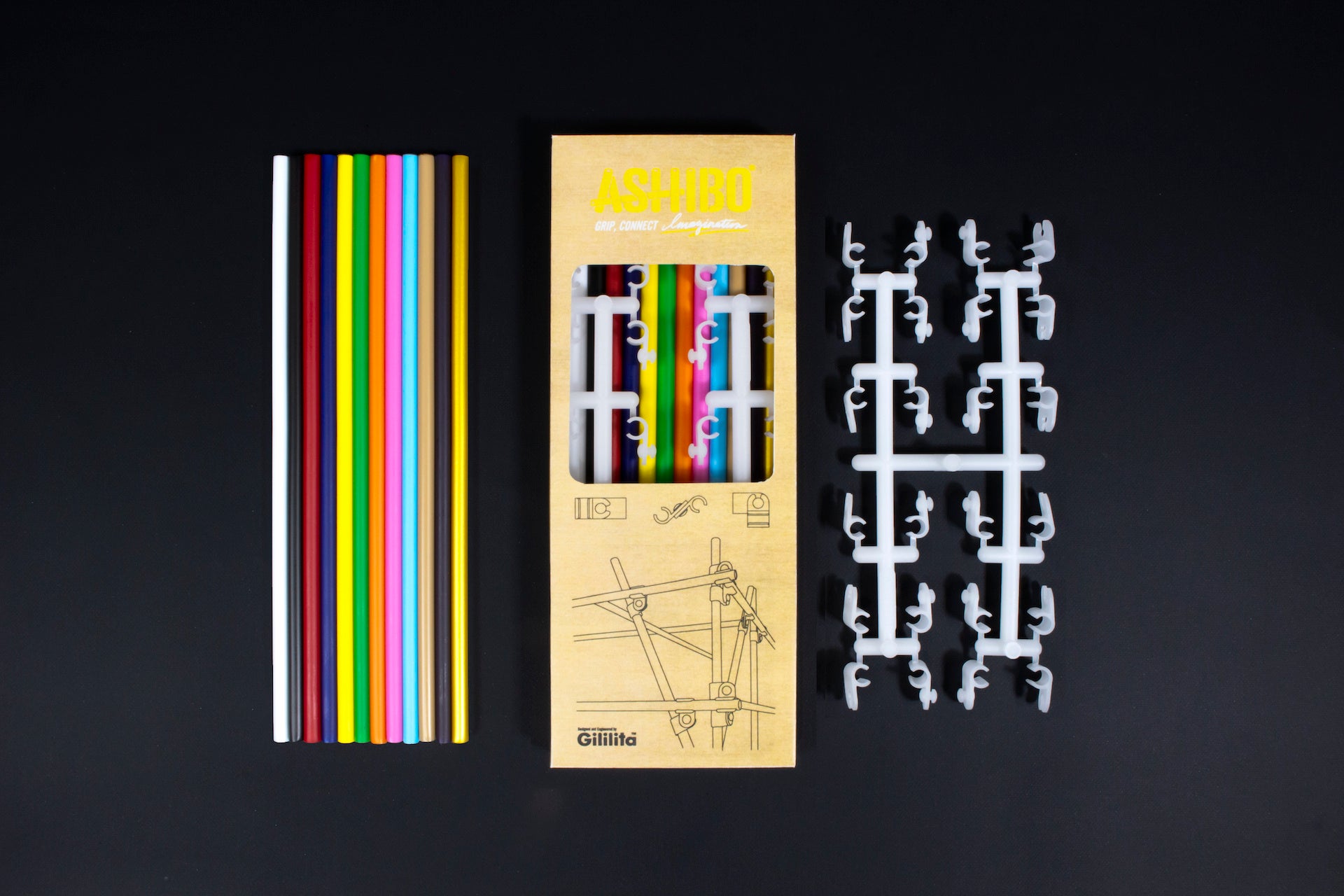 本製品「ASHIBO」は、子どもたちの自由な創造力と思考力を育む究極の新しいおもちゃを作るために試行錯誤をする中で、古くから日本の建設業を支えてきた工事現場の「足場組み」が最適解であるという答えにたどり着き開発されたブロックトイです。「ジョイント」「ストロー」のわずか2パーツの組み合わせだけで無限の作品を自由に「建設」して遊ぶことができます。専用に開発した丈夫な12色のストローだけではなく、直径の6ミリ付近であれば、これまで使い捨てにされていたストローなども一緒に遊ぶことができます。工事現場などを観察してその構造を調べたりするのに良いかもしれません!