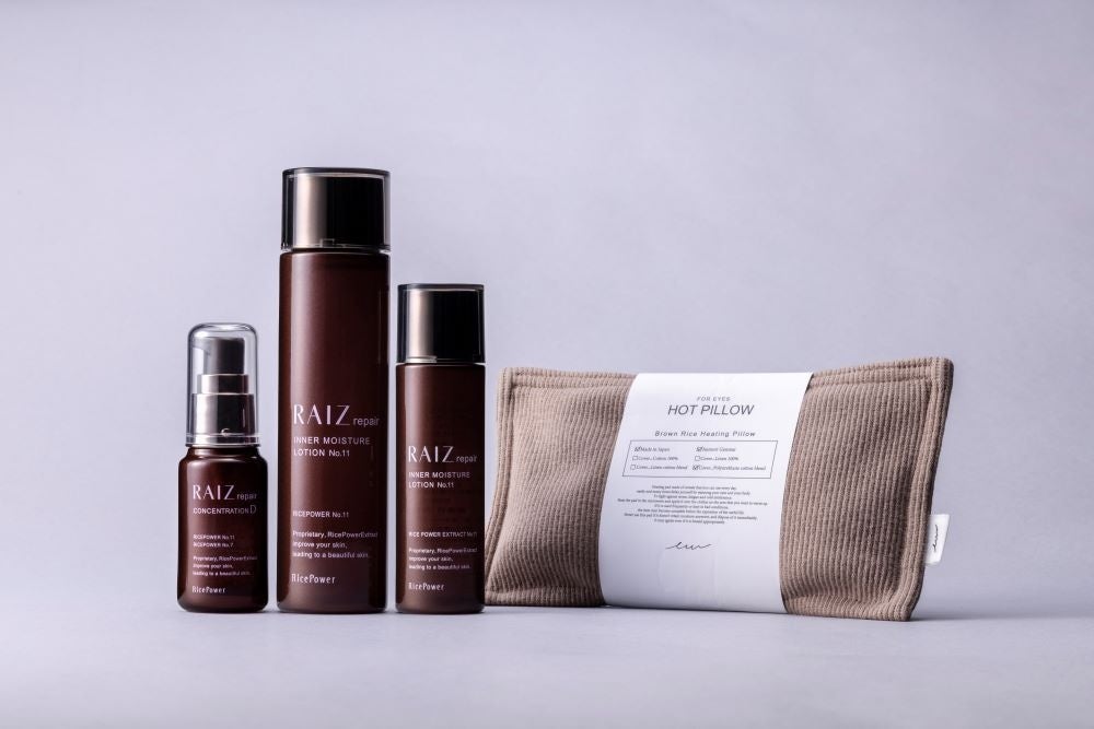 ライスパワーの最高峰※2エイジングケア※3シリーズ「ライース リペア」からは、勇心酒造内でライスパワーエキスが最高濃度で配合されたスペシャルケアアイテムと、シリーズ一番人気の化粧水がセットになったキットが登場。青森県産の酒米のうち余剰米を再利用した玄米ホットピローは、穀物の温熱でじゅんわりと温めて解きほぐしてくれます。