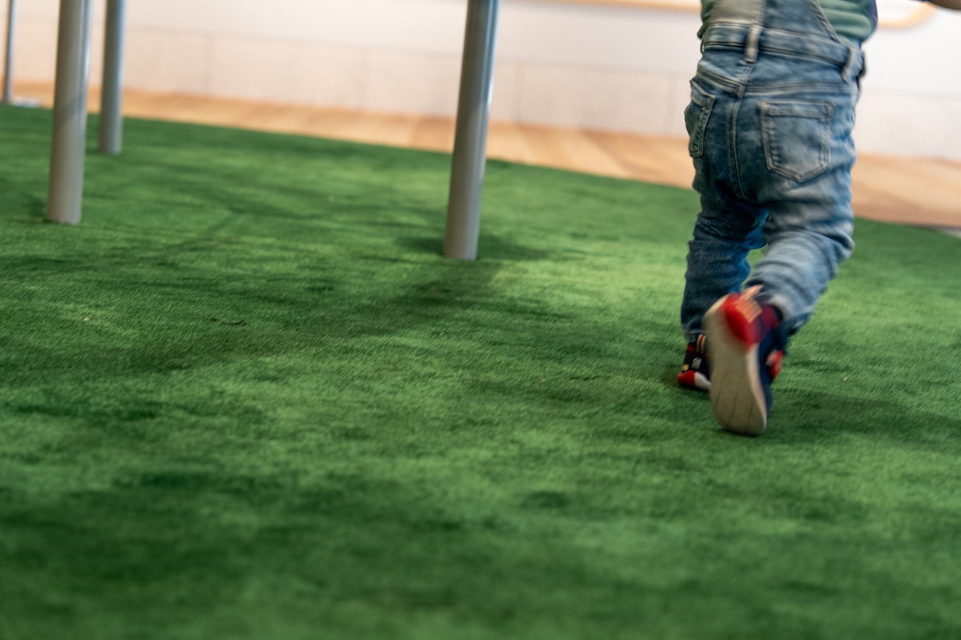 民間事業者初。和紙を原材料にした、サラサラで柔らかい遊び場にピッタリな人工芝を導入。製造過程でマイコプラスチックを発生せず、海や自然に流出しても生分解性を保つ、環境にやさしい素材です。