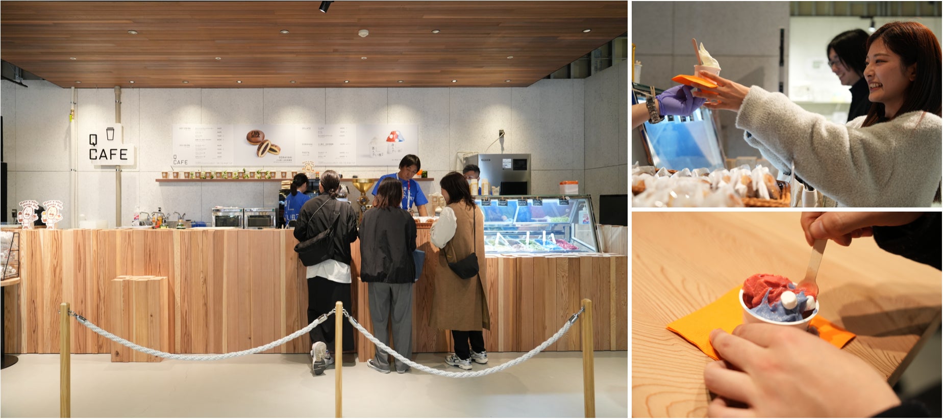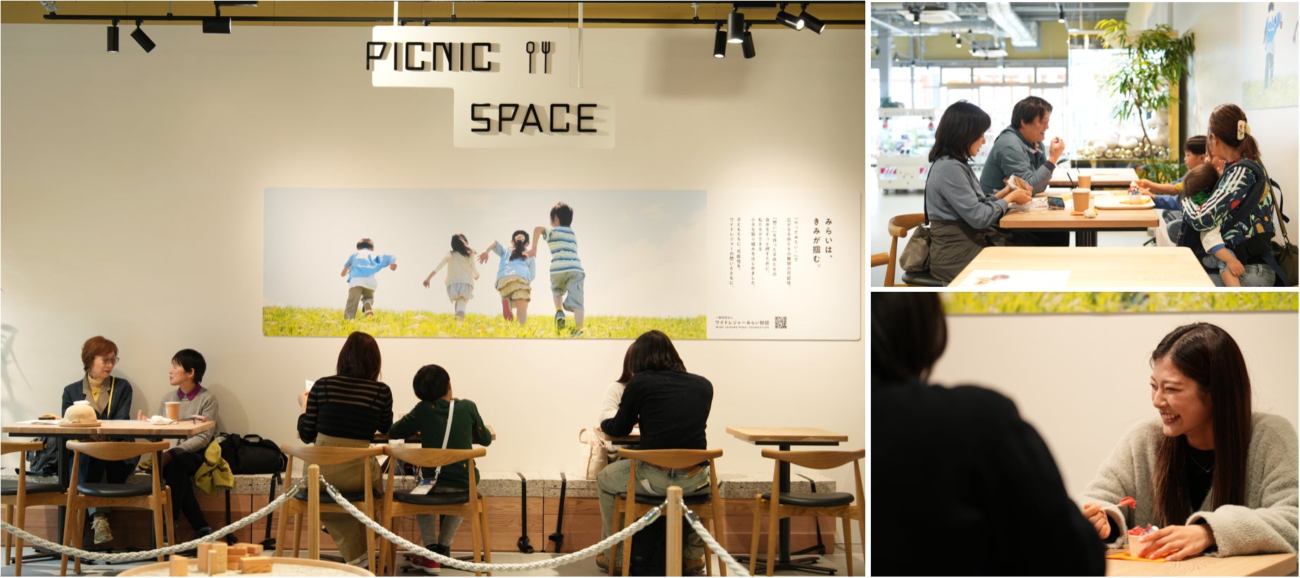 Q CAFEで購入した食事を楽しめる、イートインスペース。ここでくつろぎながら、MIRAPPAで遊ぶお子様を見守ることもできます。