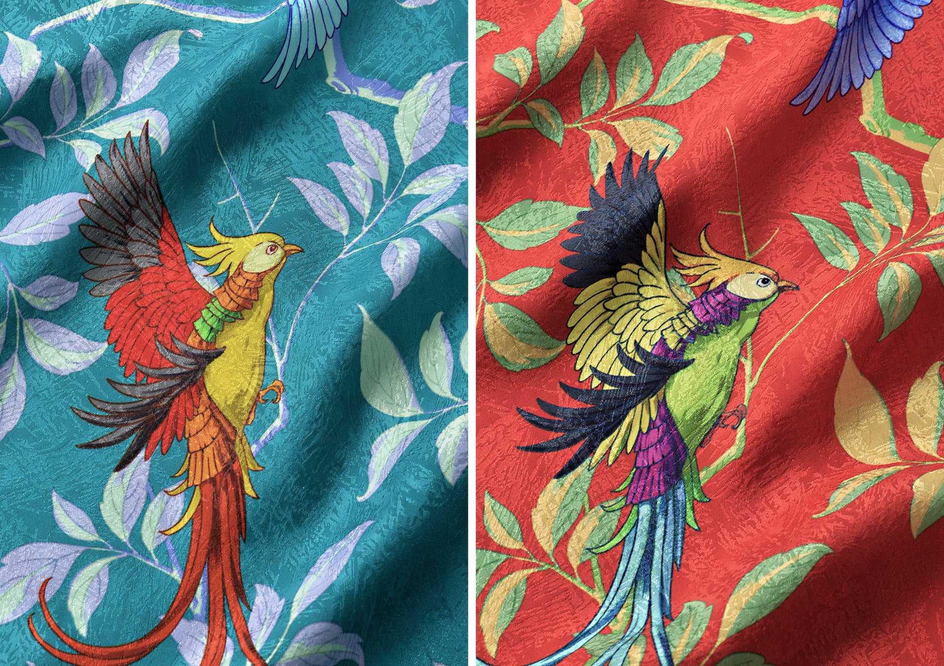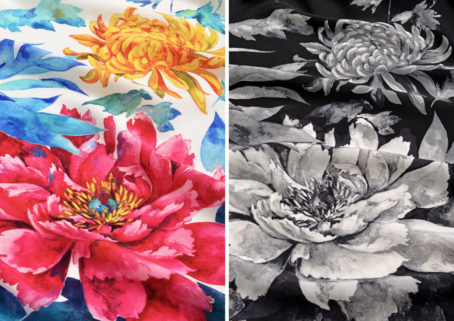 デザインに合わせてセレクトされた地紋の異なるシルク生地