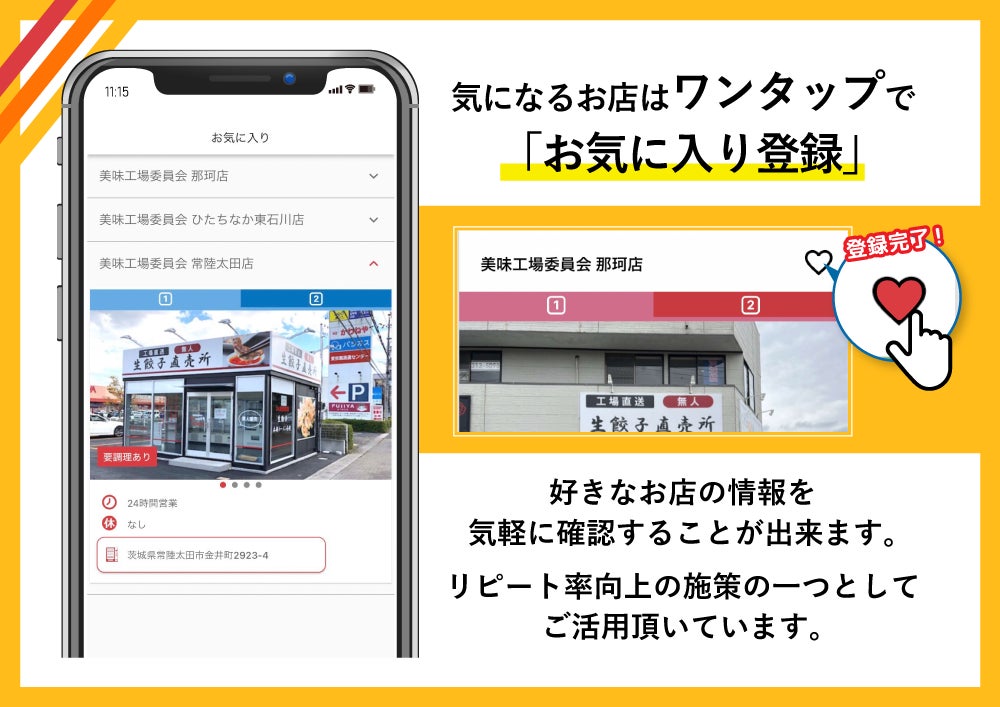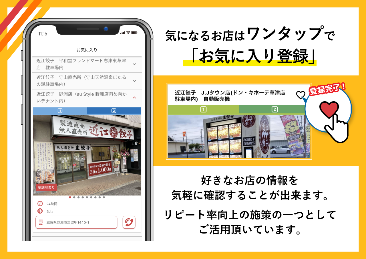 お店を「お気に入り登録」をすることもでき、検索する手間を省いて、お気に入りのお店の情報を確認することができます。