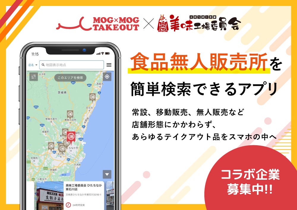 食品無人販売所・食品自販機を探せるアプリ!「モグモグテイクアウト」 × お持ち帰り専門店「美味工場委員会」のコラボ企画!