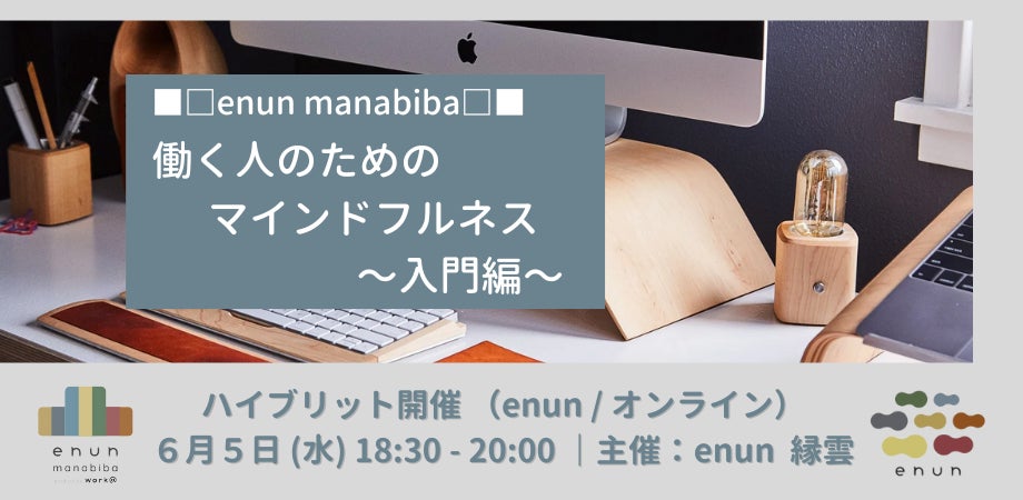 ■□enun manabiba□■ 働く人のためのマインドフルネス 〜入門編〜 コワーキングスペースenunとオンラインにて開催