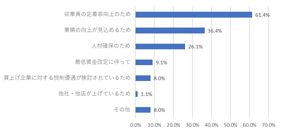 ◇引上げの理由としては「従業員の定着率向上のため」が61.4%で最多