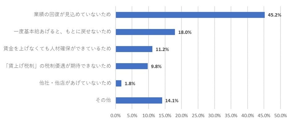 また引上げを予定していない理由については「業績の回復は見込めないため」などの回答
