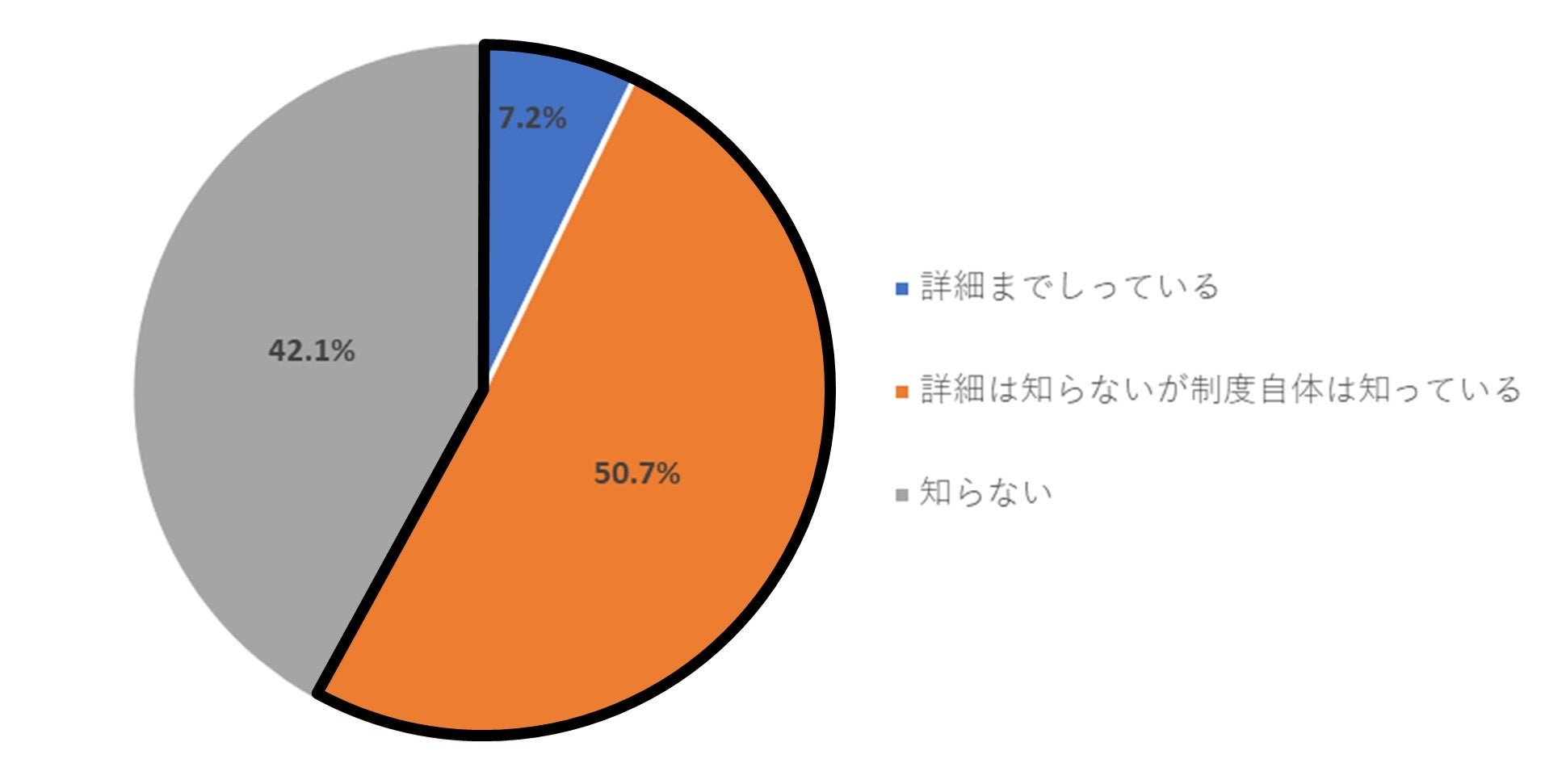 2022年4月以降に施行予定の賃上げ促進税制の認知度について聞いたところ、「詳細まで知っている」が7.2%、「詳細は知らないが制度自体は知っている」が50.7%と、全体の57.9%が賃上げ促進税制自体を認知していることが分かった。また、「知らない」の回答が42.1%であった。