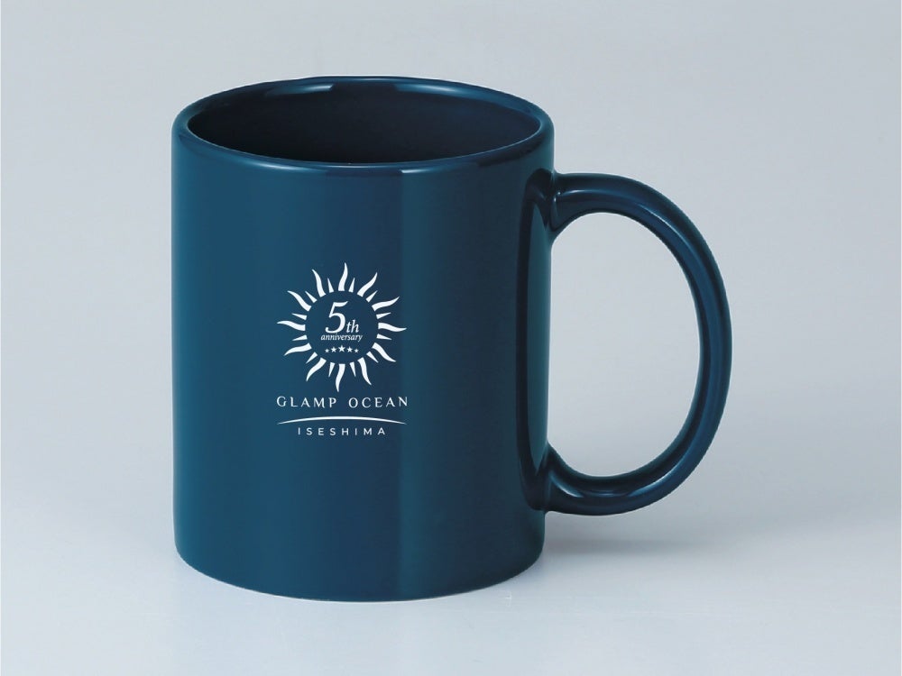 青い海をイメージした記念マグをおひとりにつき1個プレゼント。5周年ロゴ入りで旅の記念に。