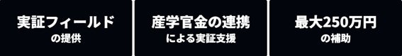 実証支援プログラムでは下記の3つを大きな柱として、成長支援を実施します。
