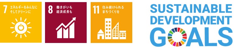 | 目標7 エネルギーをみんなにそしてクリーンに 目標8 働きがいも経済成長も 目標11 住み続けられるまちづくりを |