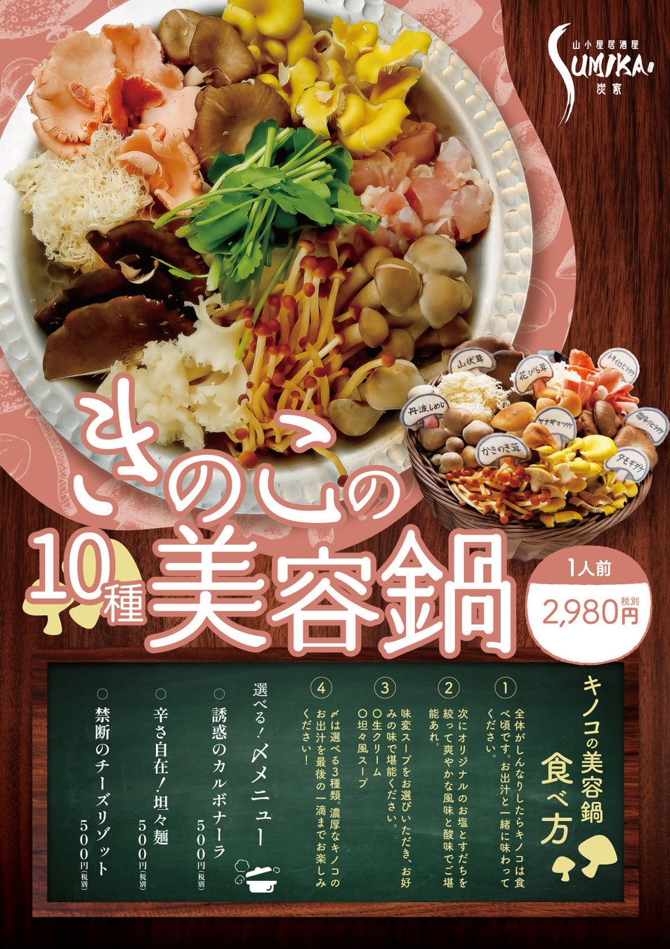 好評により期間を延長して販売!10種のキノコ鍋堪能コースで飲み放題プランも!