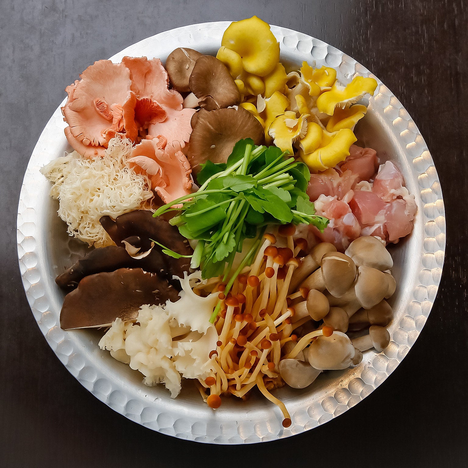 全国各地の農家さんより良質な環境で育った希少なキノコの中からその日一番おいしい状態のキノコを10種類厳選。更に高タンパク・低カロリーなのにプリップリの身はジューシーな阿波すだち鶏を使用。